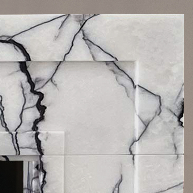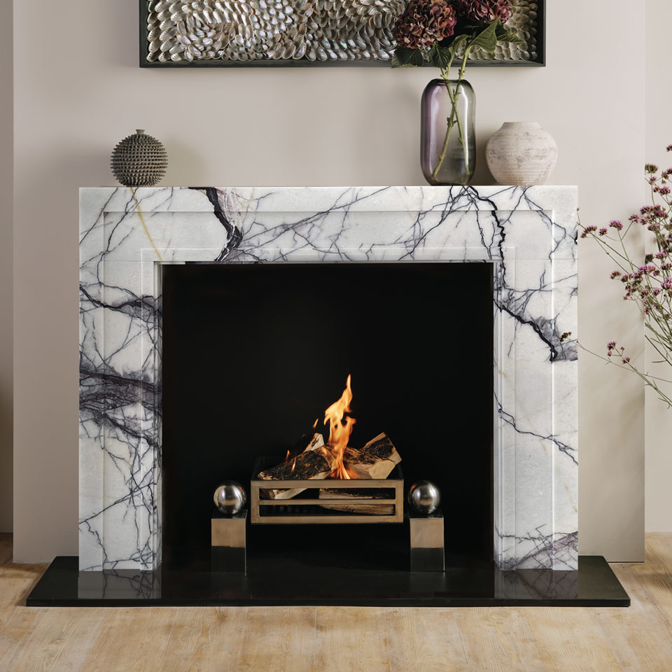 The Manhattan’s uncluttered panelled construction is the ideal vehicle to showcase the luxury marbles within this collection. Shown here in Antalyan Lilac marble.