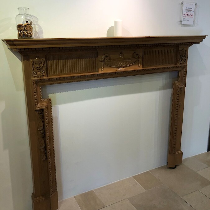 Ex-display carved pine fireplace surround. For Collection from Our Showroom in Cambridge.