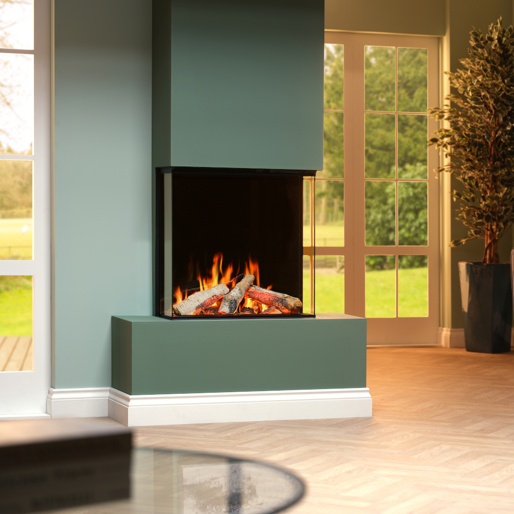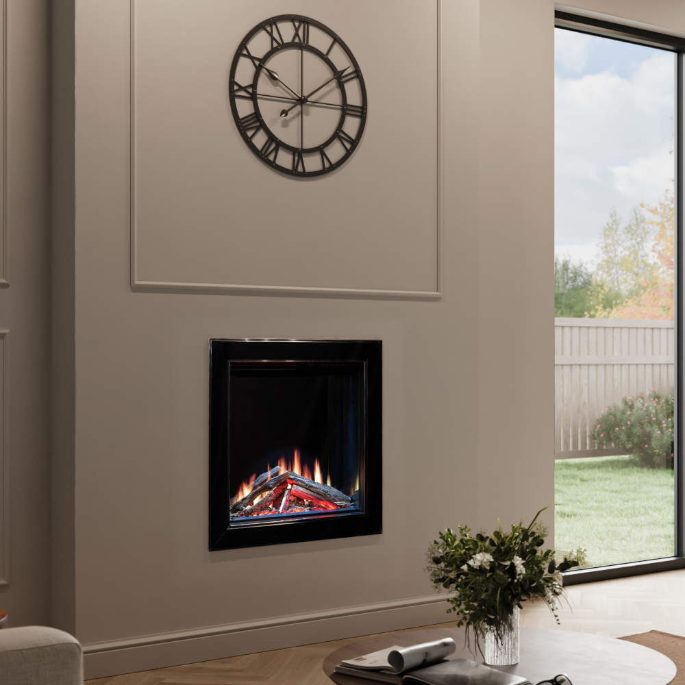 The optional real oak premium wood log set creates a more natural look, complementing traditionally styled or contemporary interiors alike.