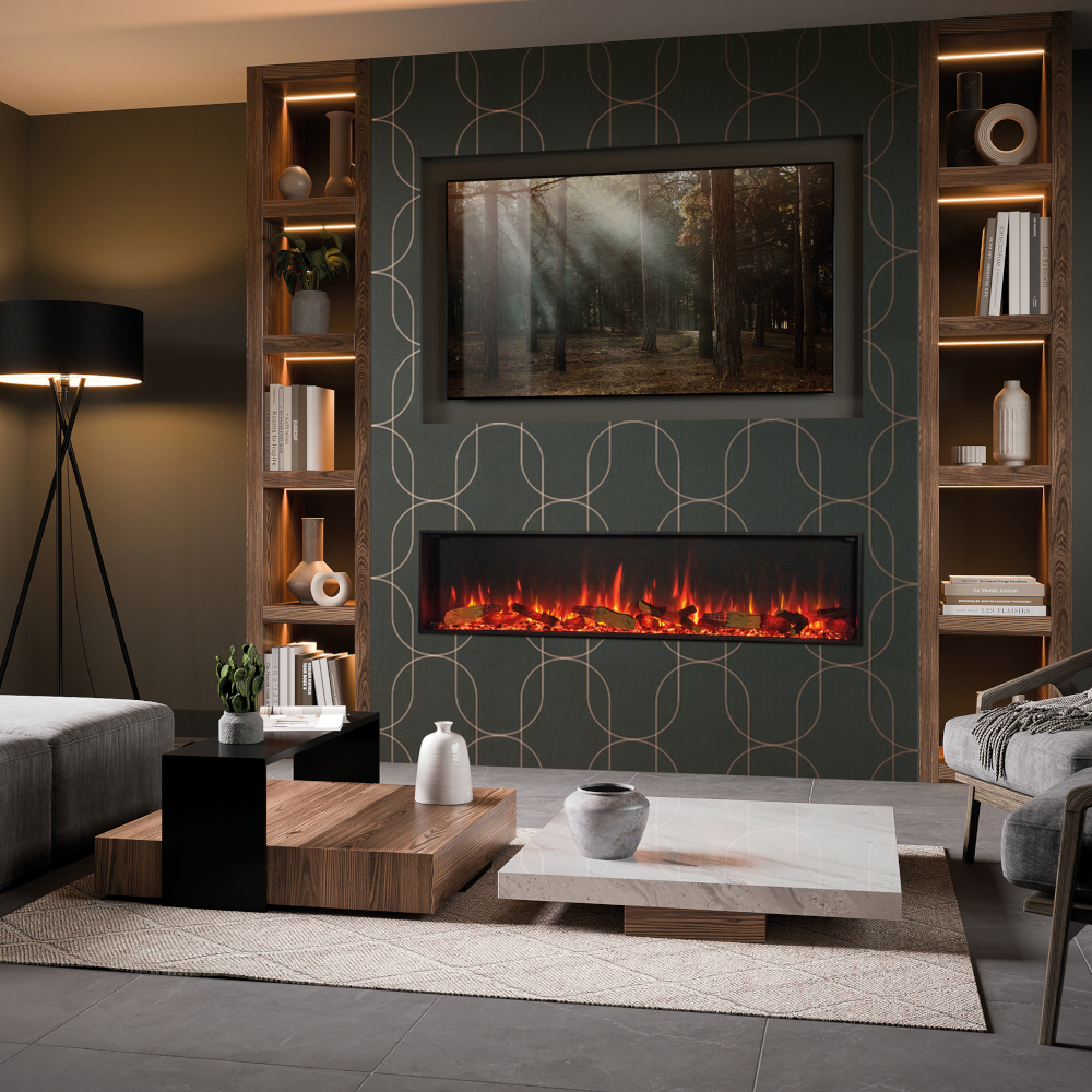 Presented in multiple sizes, all offering up to 2kW of programmable heating, these contemporary built-in electric fires can also be enjoyed without any heat at all.