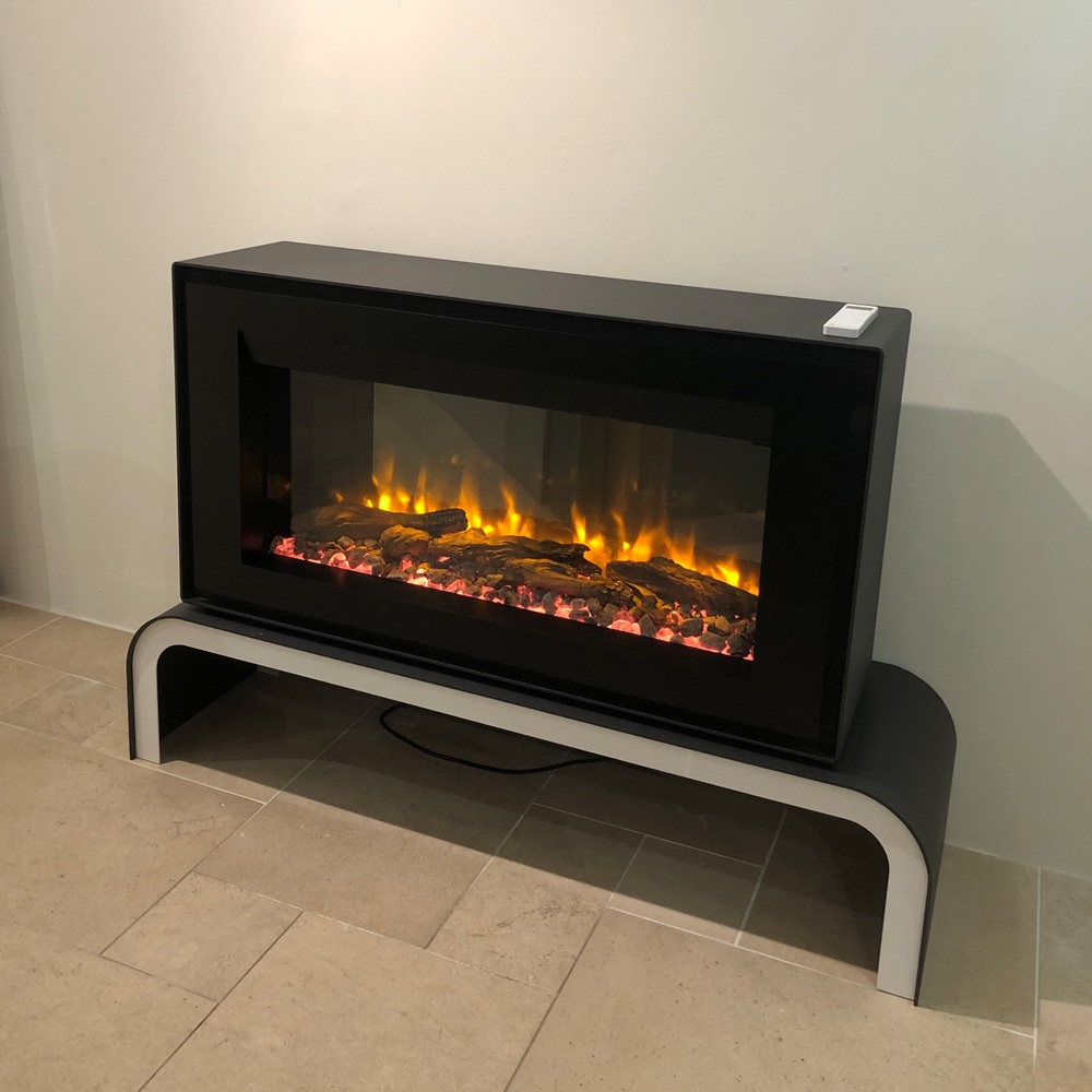 Built-in electric fire with LED flame effect, 700mm x 650mm glass window, thermostatic remote control. Can be hearth mounted with an infill and surround, options sold seperately, please enquire.