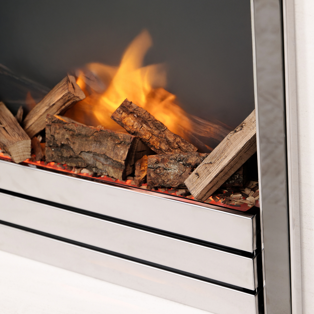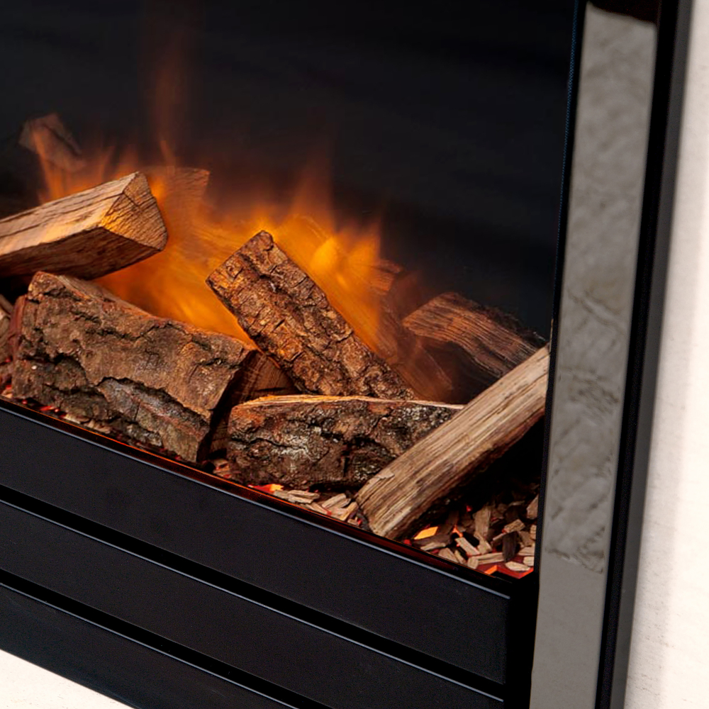A wide 22” electric fire that fits into a standard 16” opening. Building on the success of the 4D Ecoflame range, the 22” Maxi electric fire innovates by adding the new Real Oak Premium Log Set and a new range of fascias.