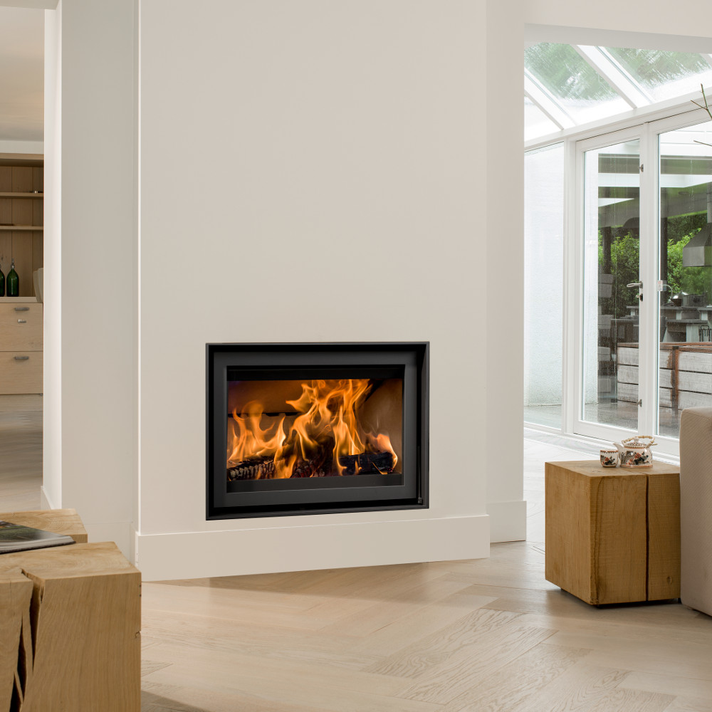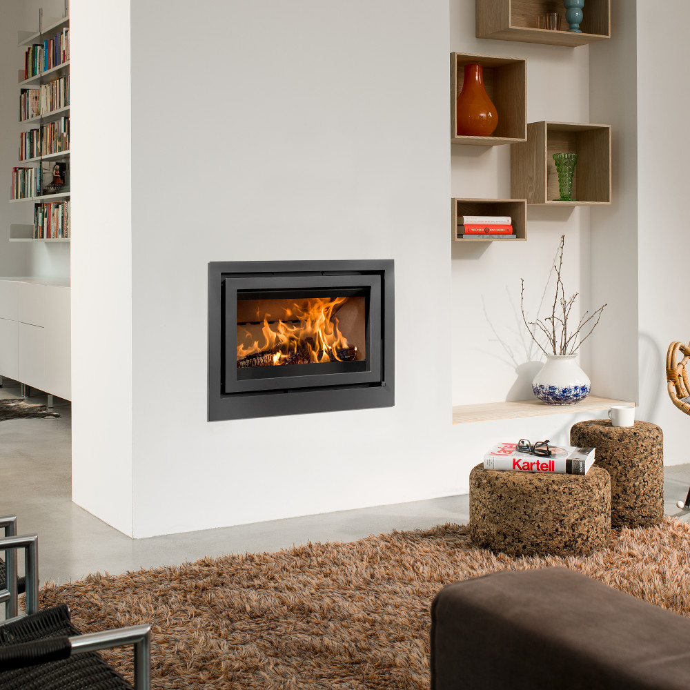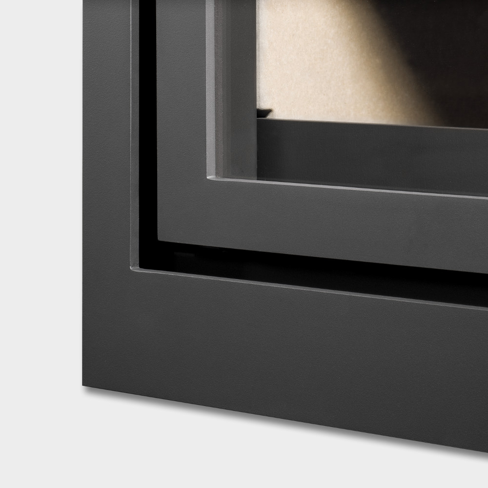 The position of the ventilator is new. It is now located at the back of the fire. This has created space for a deepened combustion base, giving you extra heating comfort which is another advantage. This makes it possible to choose from four different design frames.