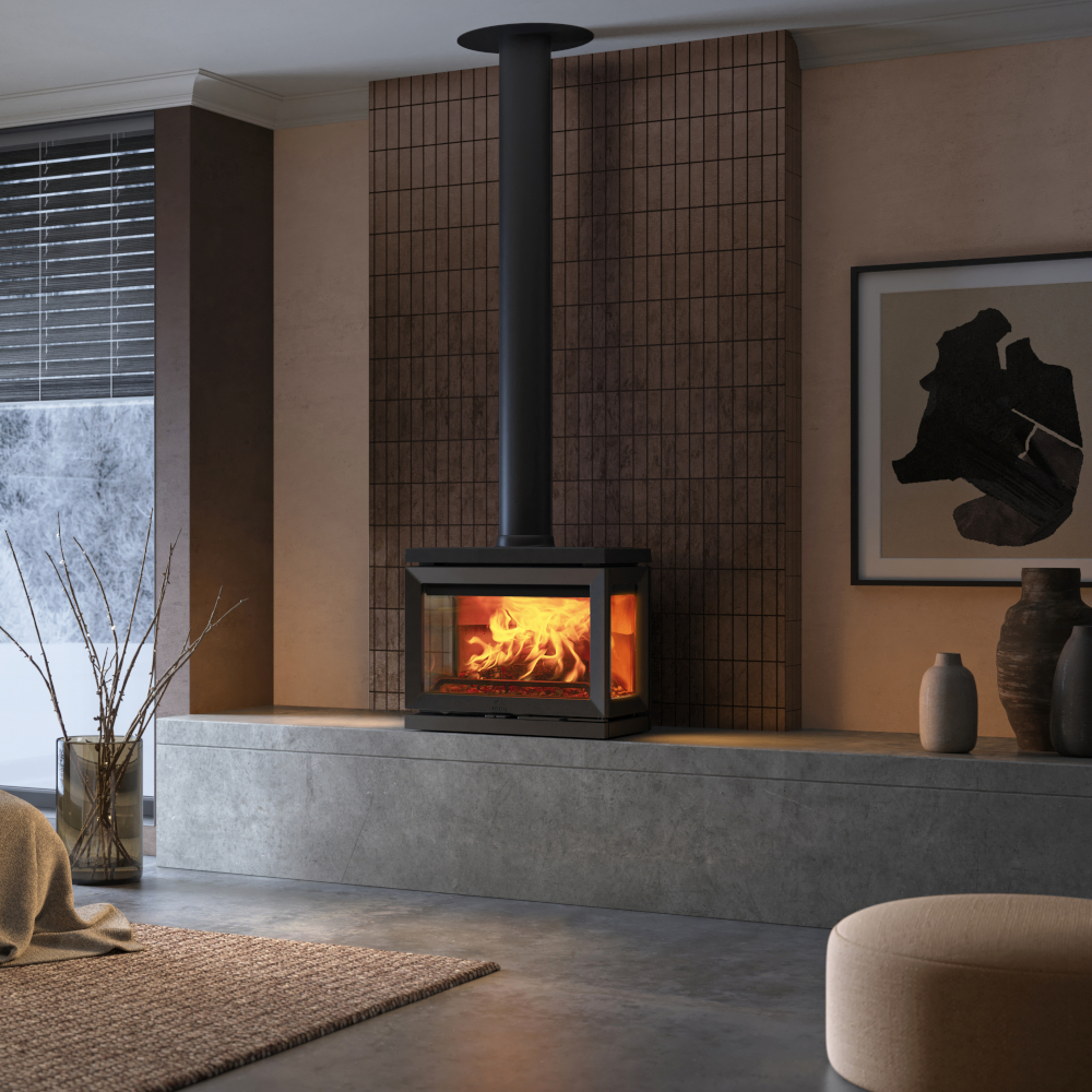 The LB (Low Base) version is a compact stove with excellent heating performance and fl exible placement options. It can be installed on a bench to suit both your interior and your style.