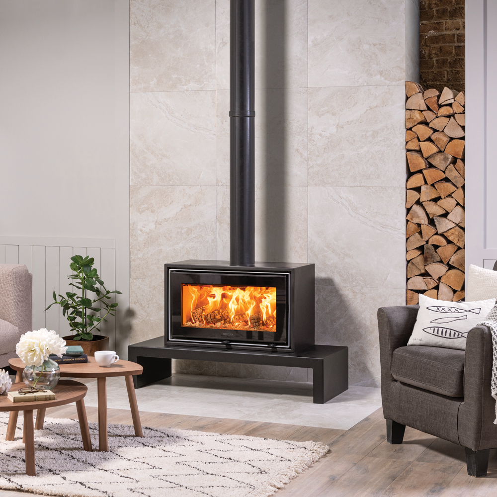 The Stovax Studio Air 1 Freestanding wood burning fire offers the heating performance of the inset version, but with the presence of a standalone stove.