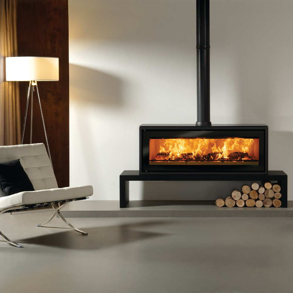Designed to be sited on to the optional 180 Bench, or hearth mounted to achieve the distinctive stove look, the Studio 3 Freestanding will create maximum visual impact in rooms of larger proportions. It also has the ability to be fitted with an optional rear heat shield to reduce the distance to combustible materials behind the appliance and extend the styling possibilities further still.