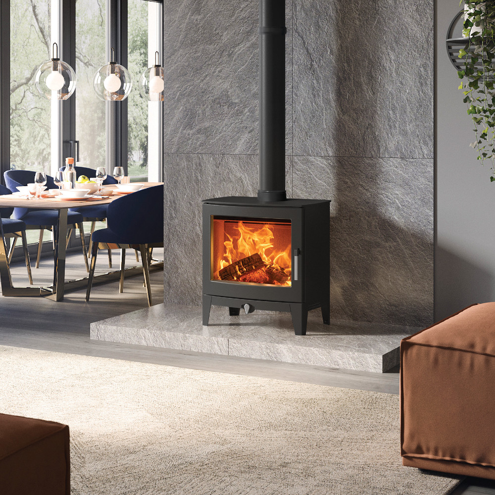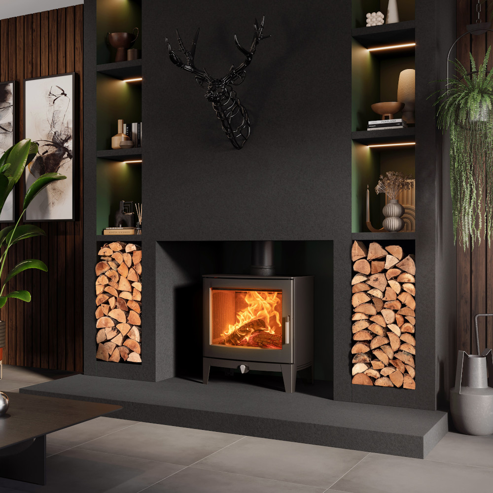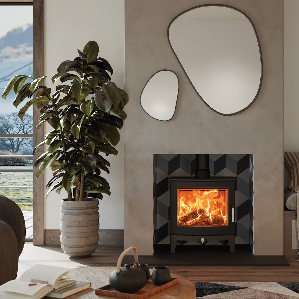 Designed to heat larger spaces with an impressive 8kW of heat, the Stovax Futura 8 is a large log burner offering stylish looks, spectacular flame visuals, and high efficiency Ecodesign performance. With a minimal contemporary aesthetic and responsive stainless steel air control, the Futura 8 is a perfect fit with all kinds of interior styles. Meanwhile, the hefty heat output, coupled with a state-of-the-art convector heat system and Integrated Heat Shields ensure you can keep the whole family warm with ease.