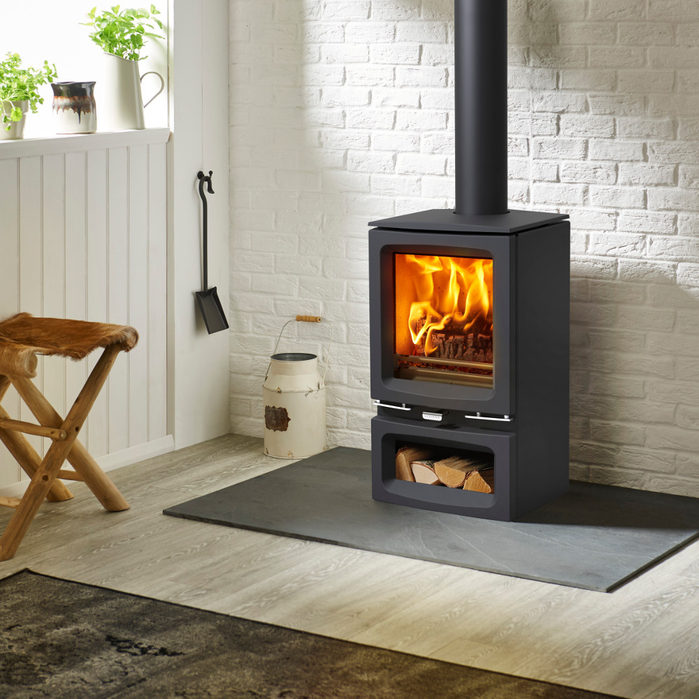 The Stovax Vogue Midi T is a taller version of the Vogue Midi wood burning stove, offering the same ultra cleanburn capability of the Midi, but featuring a more portrait firebox.