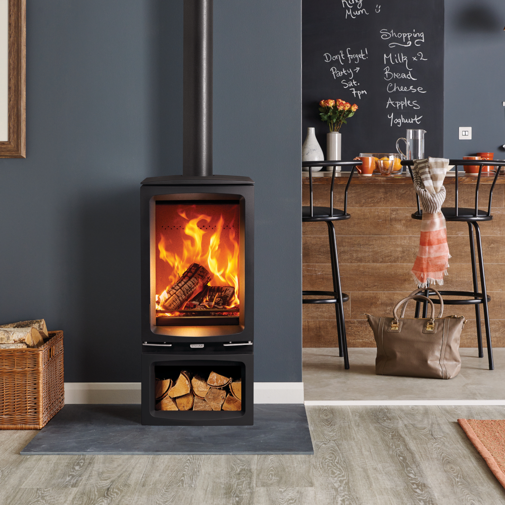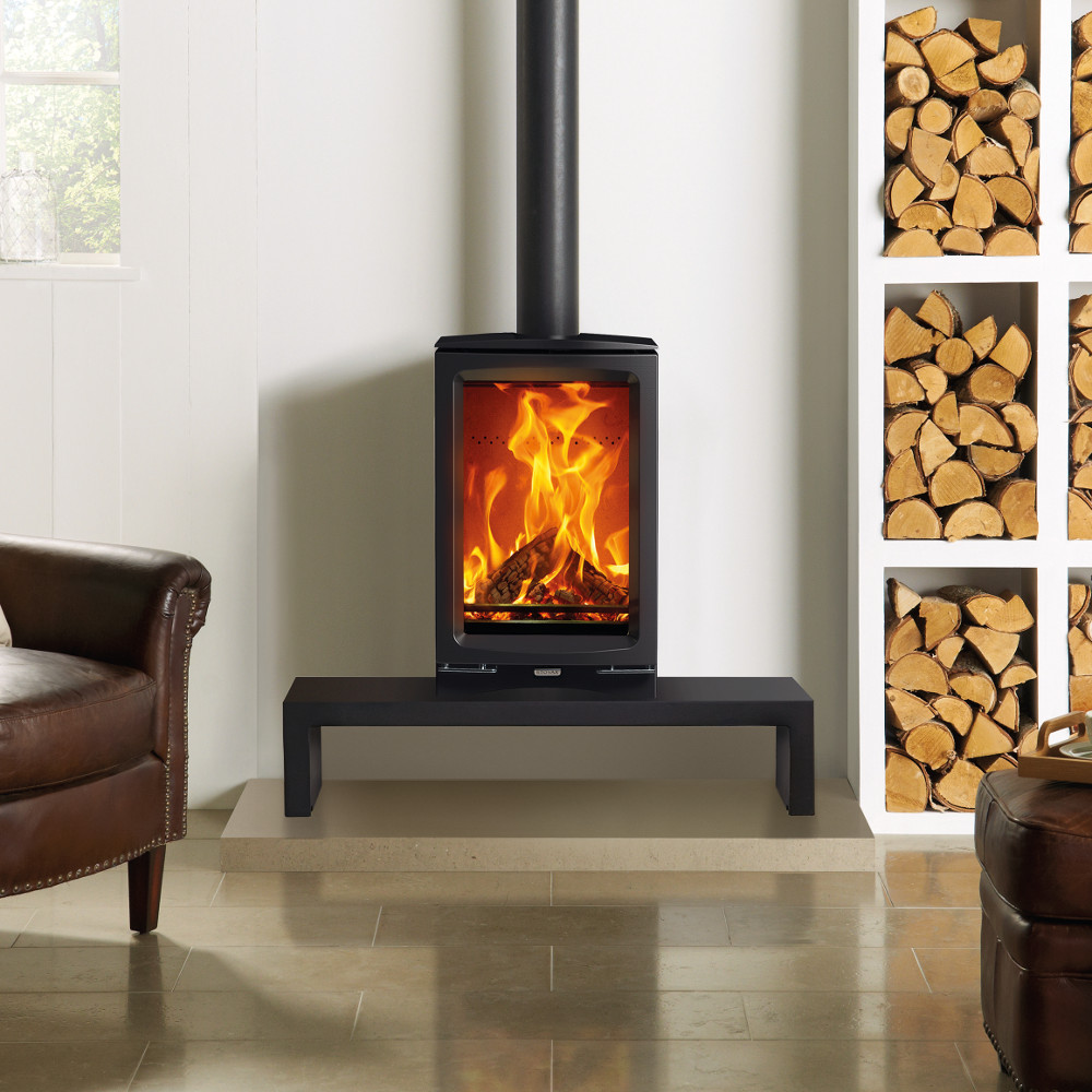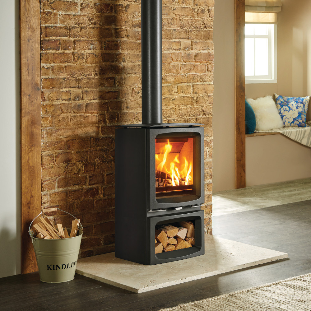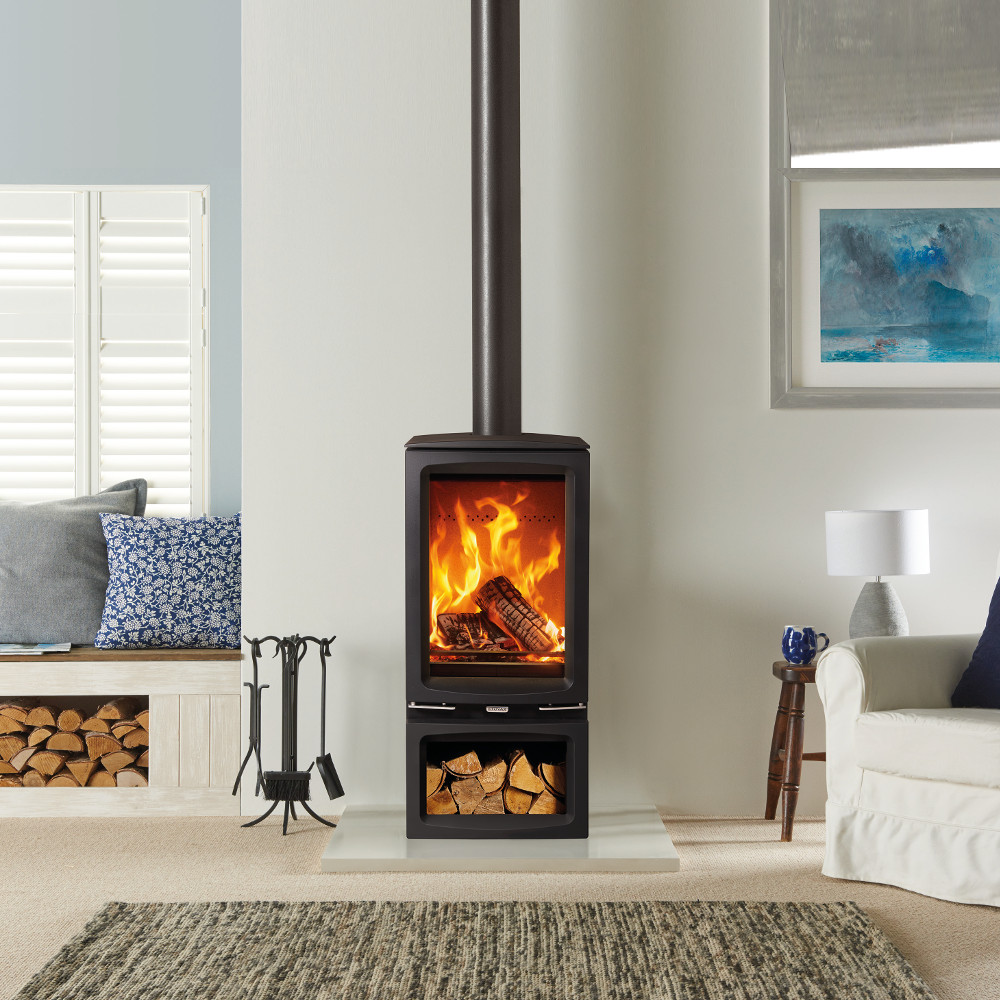 Displaying superb visuals through the large stove window, the powerful Airwash system ensures the flames can always be appreciated. The Midi T can be installed with the Midline log store base for convenient fuel storage and increased height.