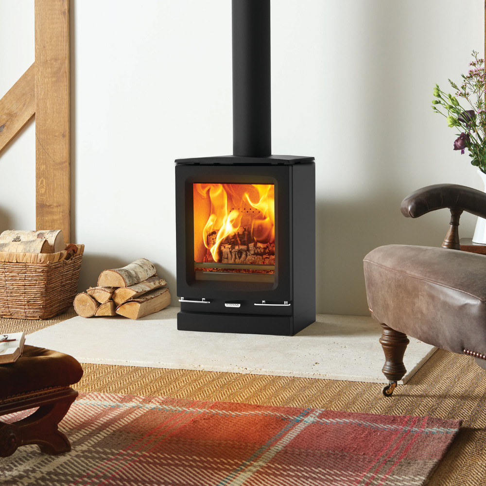 An excellent choice for smaller fireplaces or living spaces, the Stovax Vogue Small wood burning stove provides an ample 5kW of heat despite being the most compact model in the range.