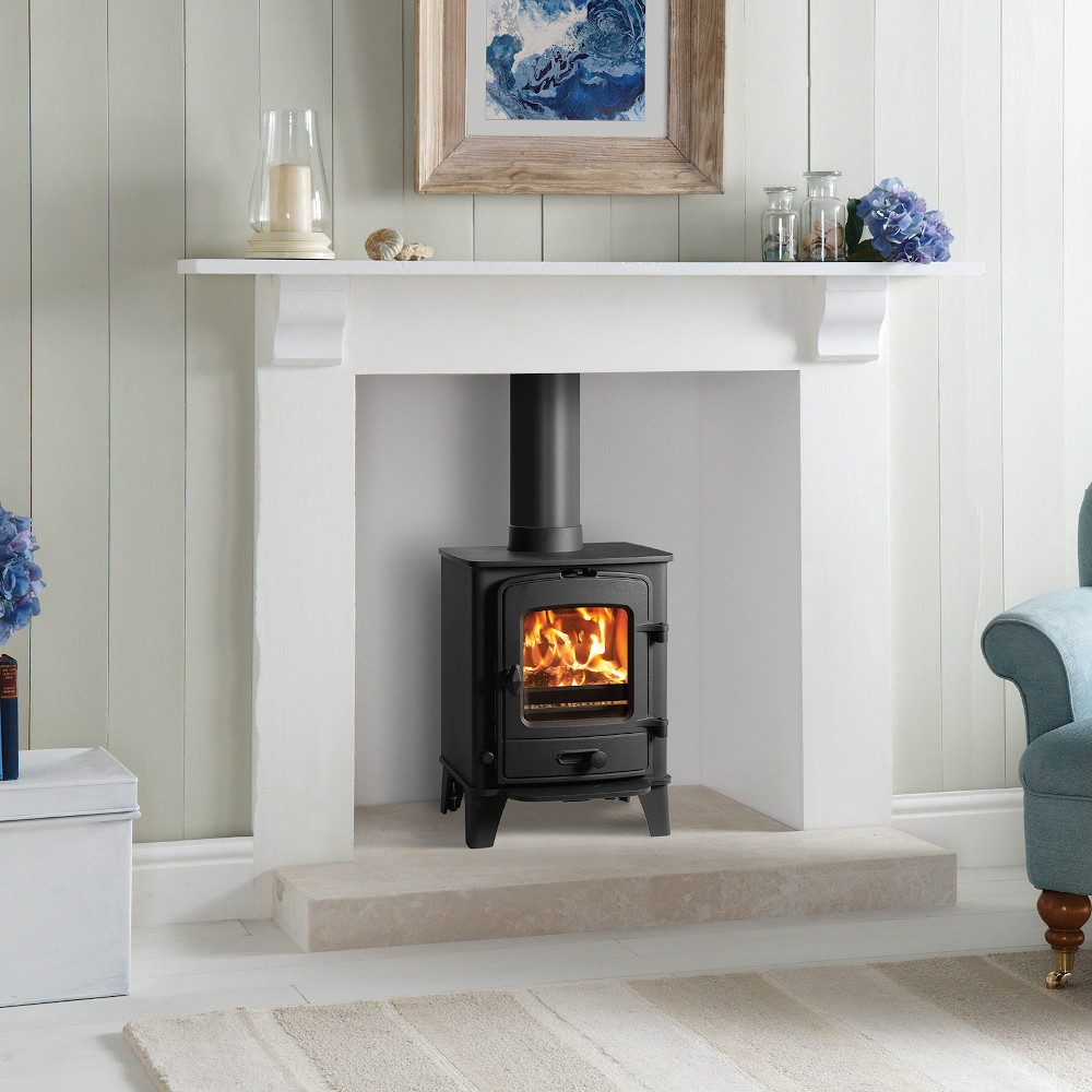 The charming Stovax County 3 multi-fuel stove features a compact rustic exterior designed to suit both traditional and modern interiors. Incorporating timeless styling including a classic arched window and door bevelling, this delightful stove offers spectacular flame views with Ecodesign performance.