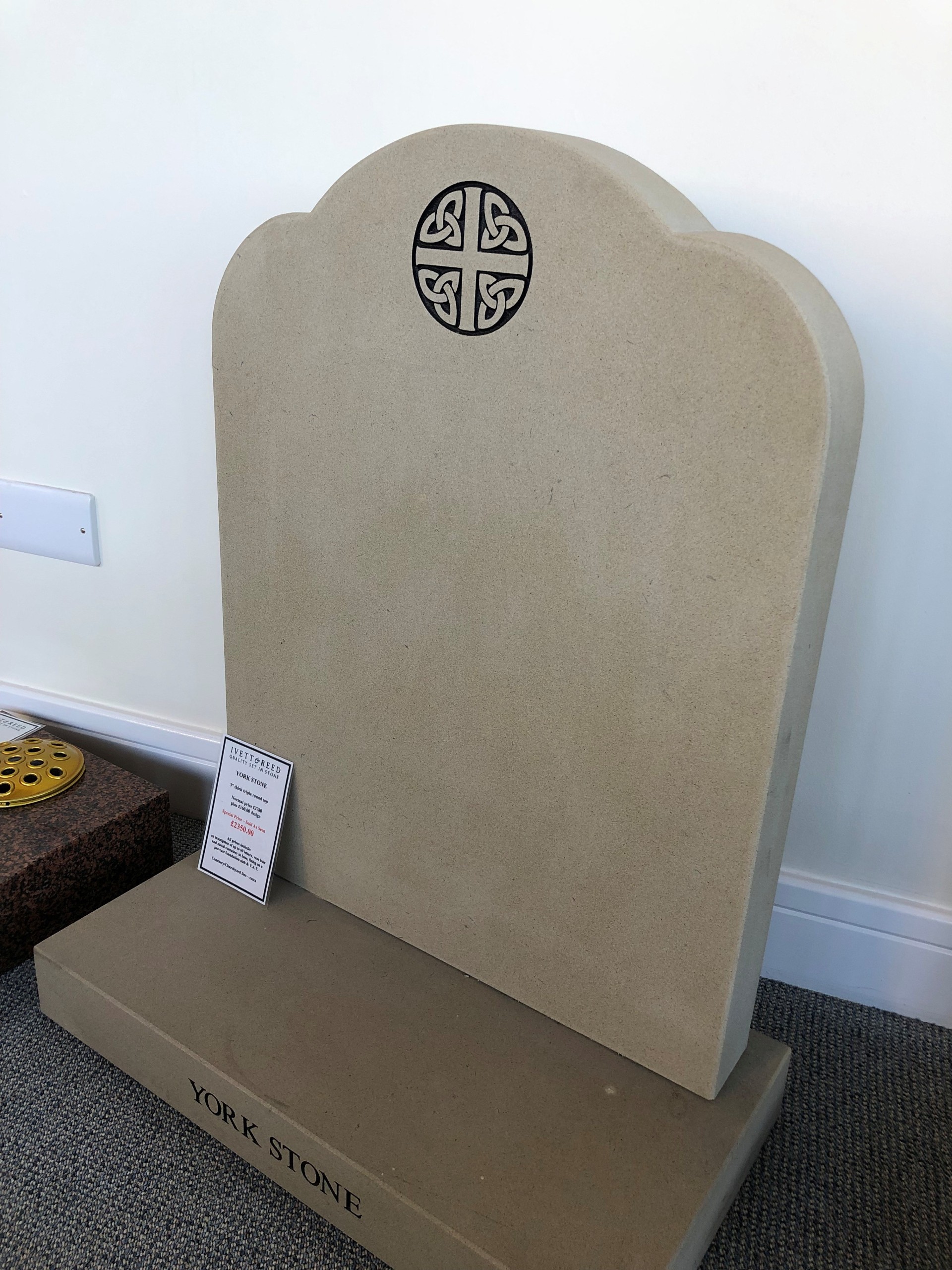 Memorial in York Stobe with Thick Triple Round Top & Celtic Cross Design.