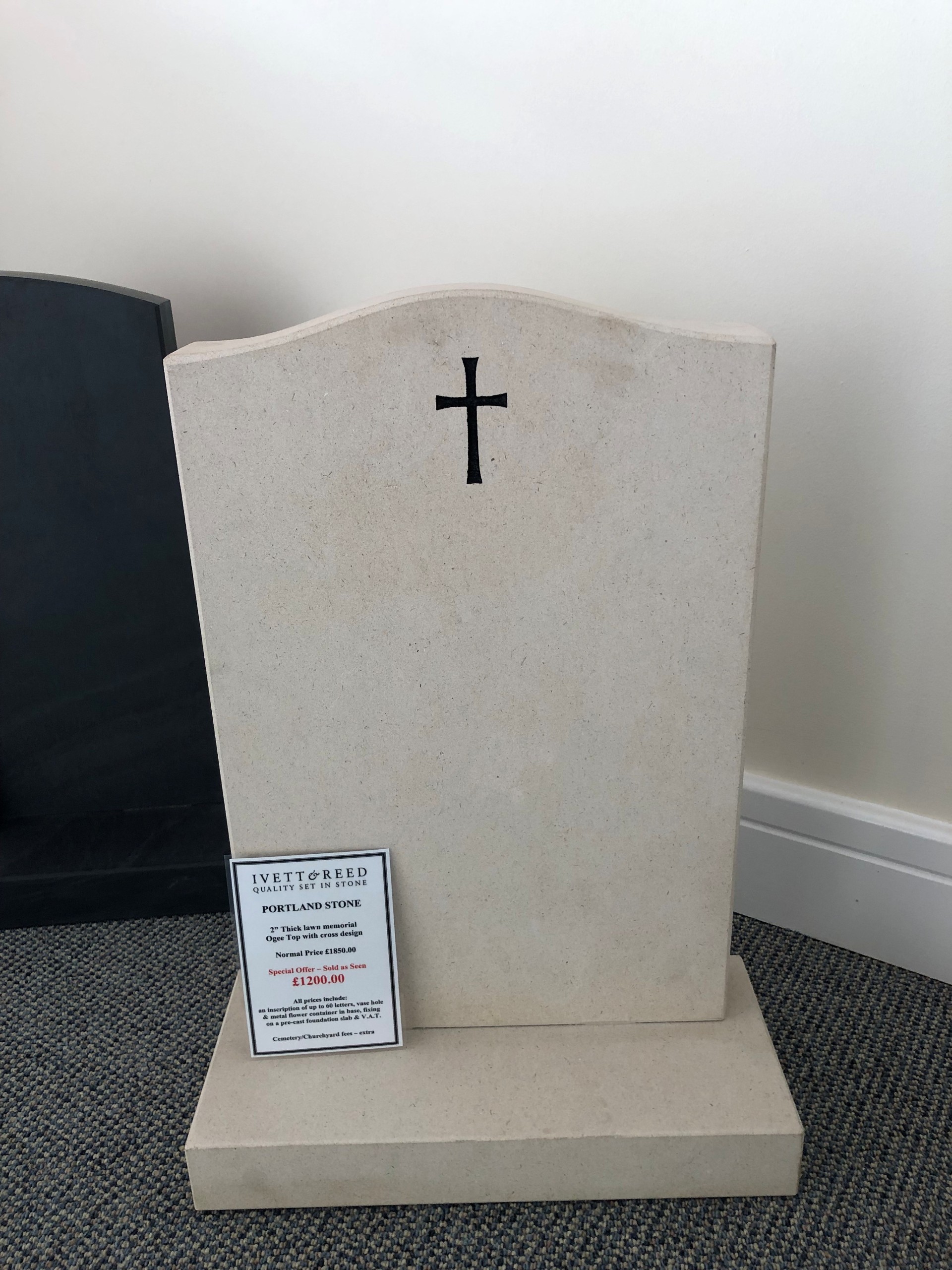 Small Memorial in Portland Stone with Ogee Top & Cross Design