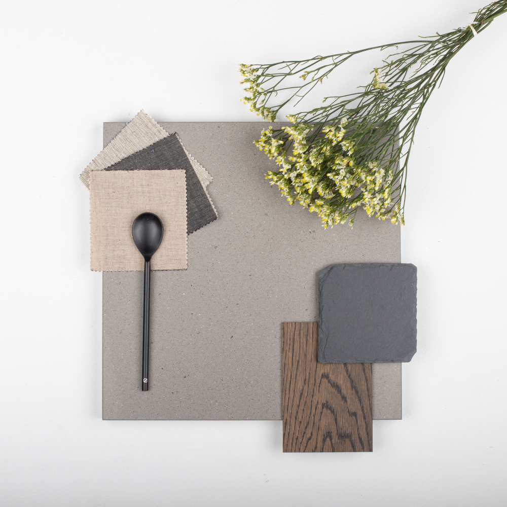 It is urban, simple, stylish. The fine-grained structure with fractions of white and transparent quartz soften the grey surface of the Gobi Urban material.