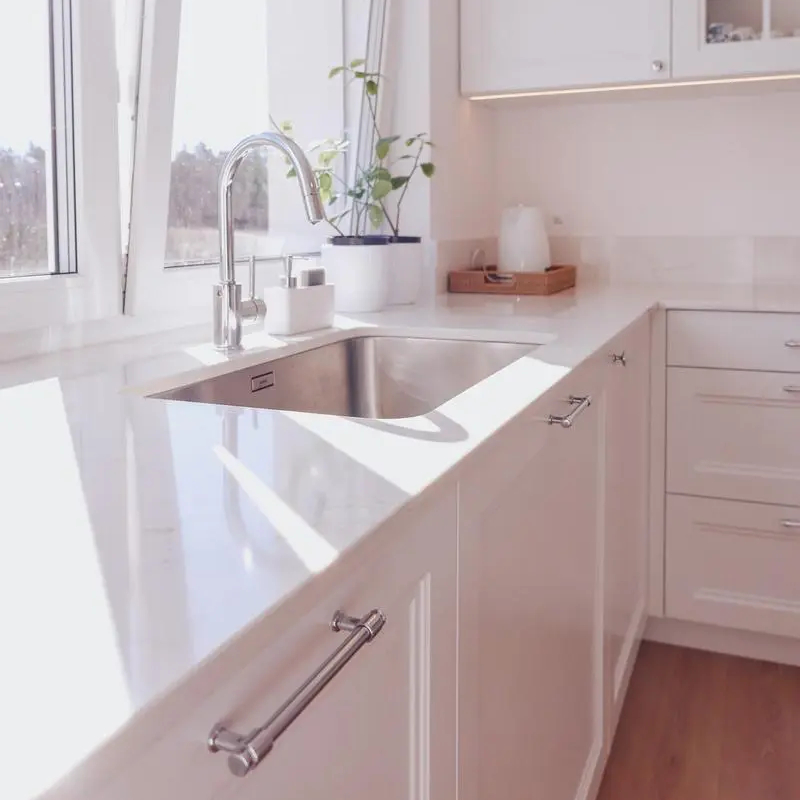 Not just white. It’s layers of light, texture, and quiet luxury. Unistone Arabescato Vagli quartz brings soft veining that feels like brushstrokes across stone - calm, but full of movement. The cabinetry adds that old-soul charm, with deep detailing. Spacious, yes - but it’s the stillness and simplicity that really make it feel special.