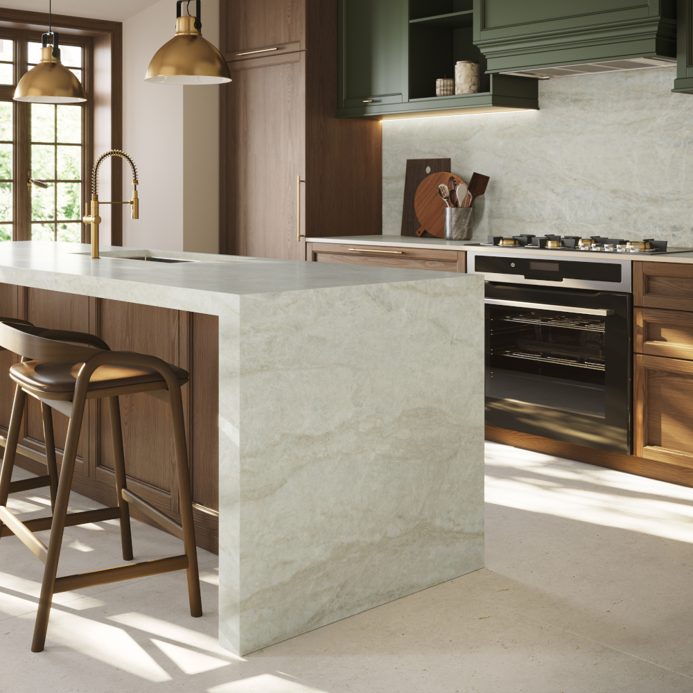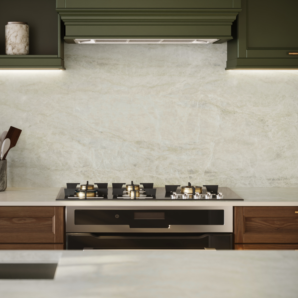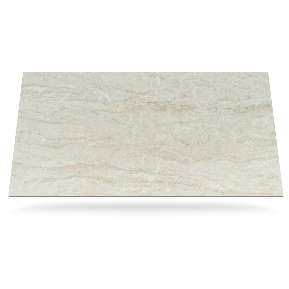 Inspired by the serene beauty of nature, Nara combines the warmth of beige tones with a soft and enveloping design. Its subtle veining, set against a luminous background, reinterprets the timeless elegance of Taj Mahal quartzite with a contemporary approach. Its silky finish enhances its calm and sophisticated character, inviting touch with a texture that conveys harmony. A balanced and versatile option, perfect for spaces seeking a touch of sophistication.